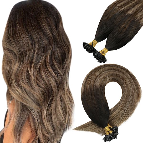 U Tip Human Hair Extensions Balayage Black to Brown #1B/4/18